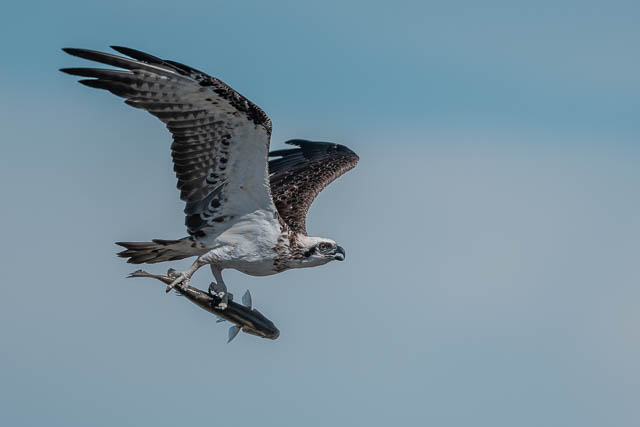 Went back yesterday afternoon with my Sony A7 and a 300 lens. Only one osprey but he was rewarded with a fine fish. I got lots of very poor pics – any tips on how to take photos as good as yours?