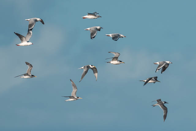The Crested Terns and Silver Gulls also took to the air.