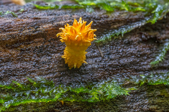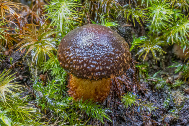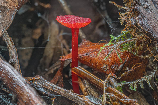 Waxcaps were rather scarce. Here is a Porpolomopsis lewelliniae –