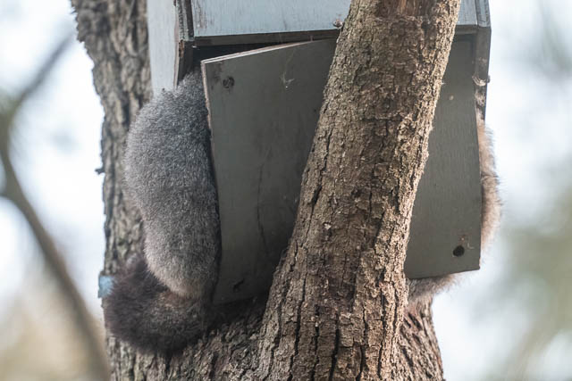 Two months earlier, on the same survey, we had seen this possum bursting our of its box –