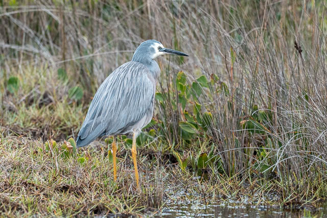We spotted a White-faced Heron trying to shelter from the wind –