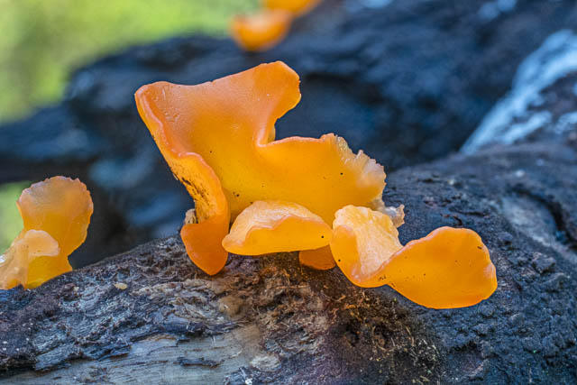 We found this large jelly fungus on a log. Perhaps Tremiscus helvelloides (Guepinia helvelloides) or similar?