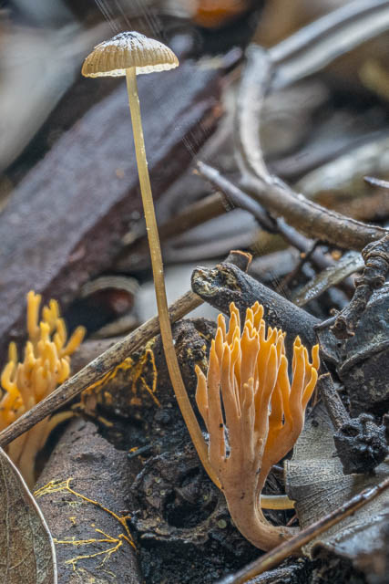 Mycena sp. and Ramaria sp. (or Phaeoclavulina sp.?)