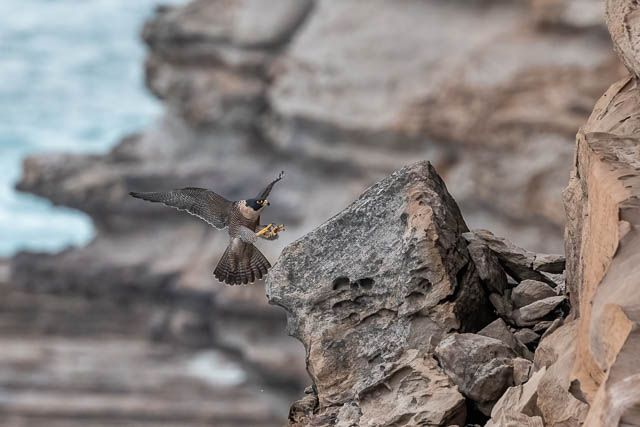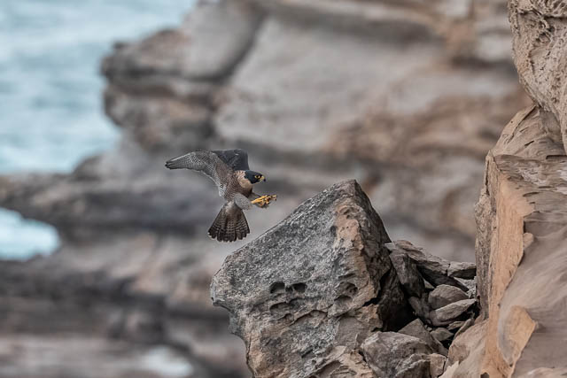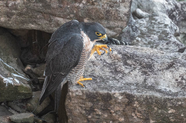 Then the second Peregrine Falcon flew towards it. It was the male, and the female was on the rock.