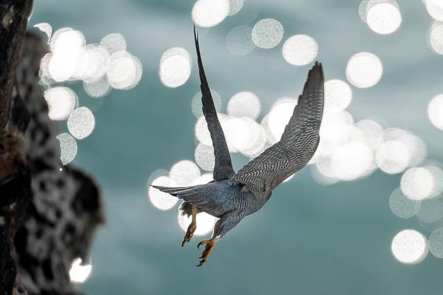It circled around and then dived past the cliffs.
