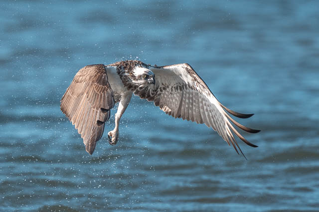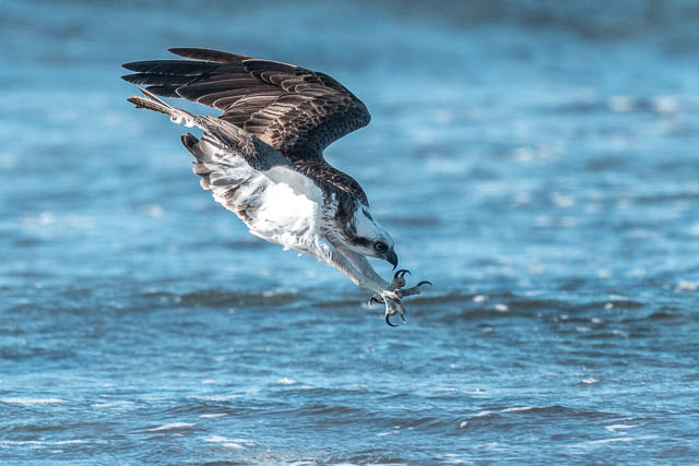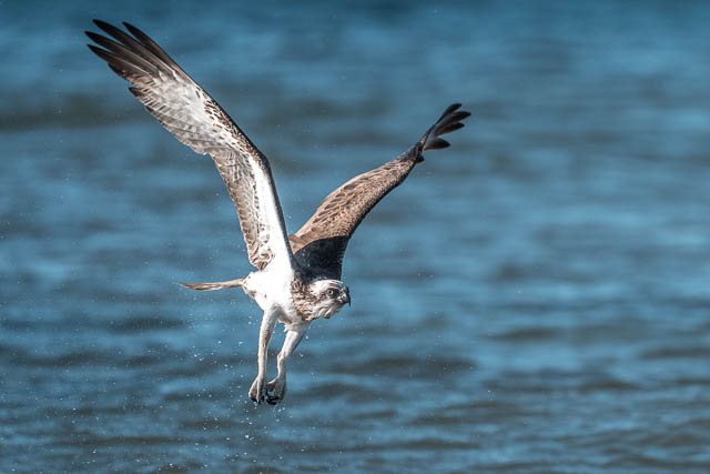 Way out near the island, and Osprey catches a fish and lands on the island.