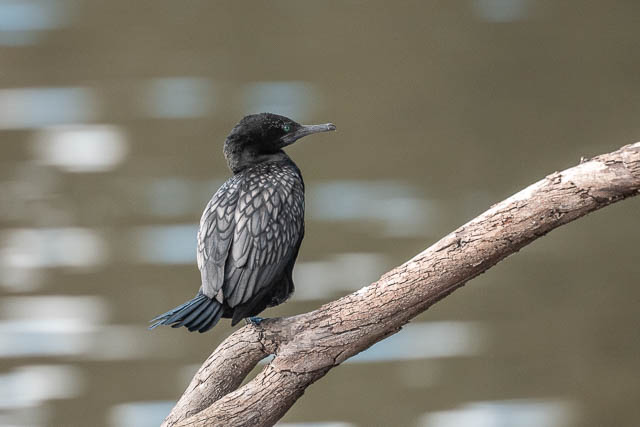 I spotted a Little Black Cormorant perched in a tree over the water.