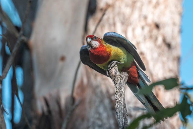 In Gough Whitlam Park, a pair of Eastern Rosellas were checking out a bird box –