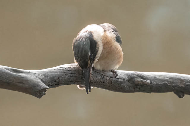 On the walk back, I spotted a second Sacred Kingfisher. It was perched in the same tree the other one had been perched in earlier, but it had slightly different markings, so is a second bird. I thought I had seen two earlier at this spot.