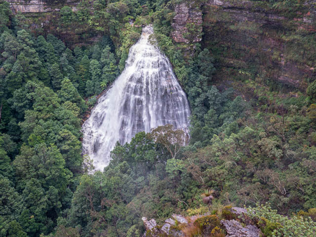 This lookout at Leura has recently been upgraded. It provides a very good view of Bridal Veil Falls, the upper waterfall of Leura Falls. The falls were flowing nicely.