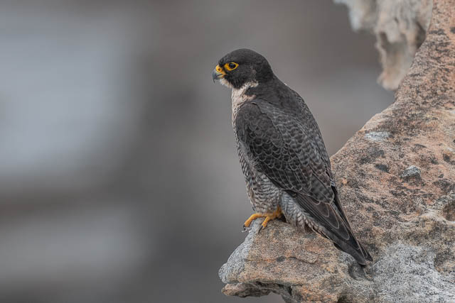 The female Peregrine Falcon was still perched in the same spot. But then it took off and disappeared.
