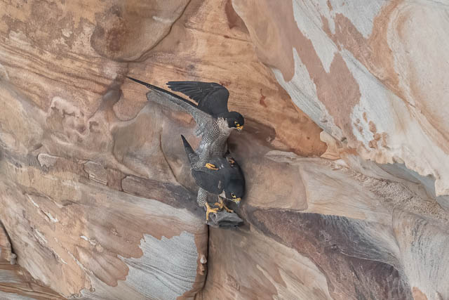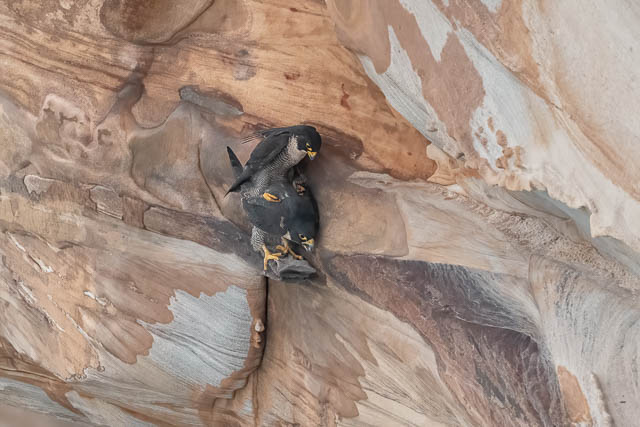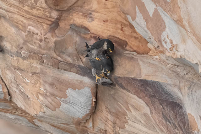 I saw it fly further along the cliffs and it had been called by the female. They mated.