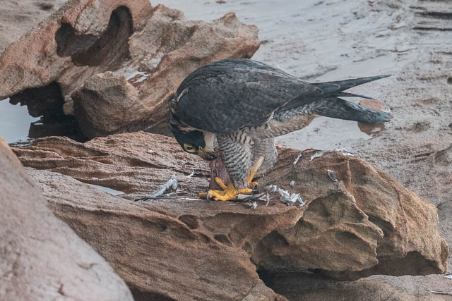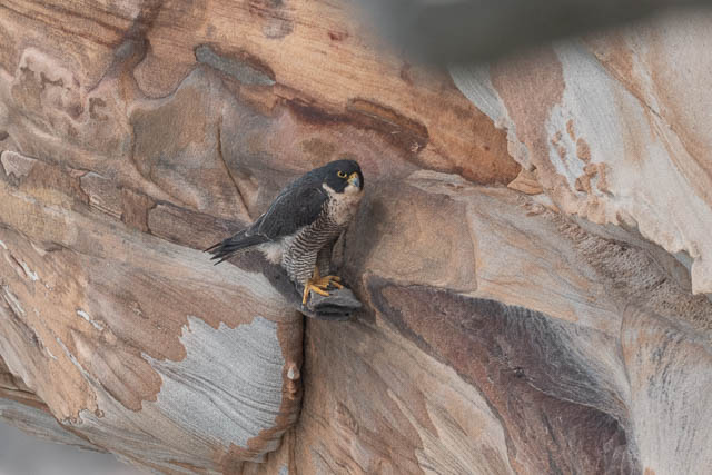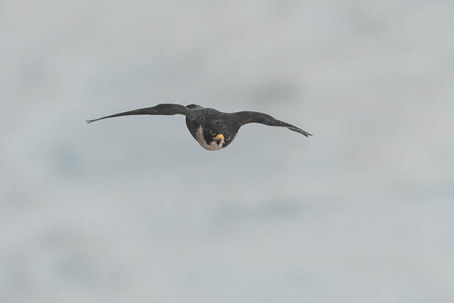 That was a good start. We then made our way out to near Boora Point. At first we spotted no Peregrine Falcons. Then I saw one fly in and land on the cliffs.