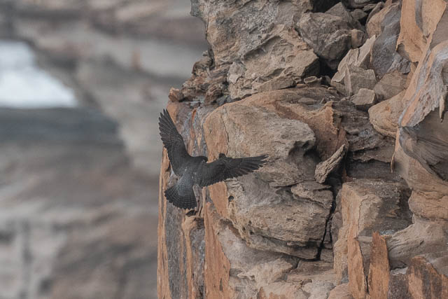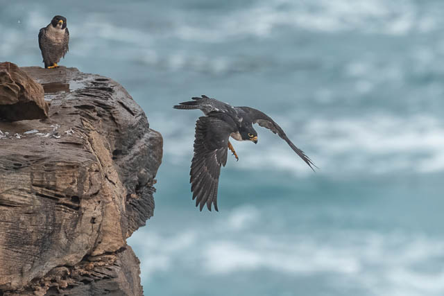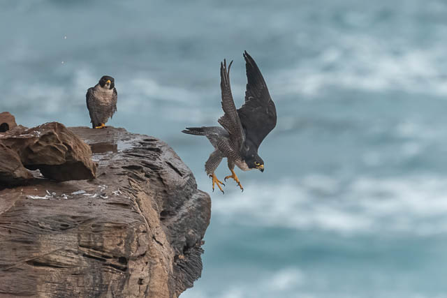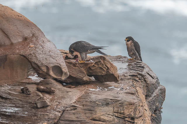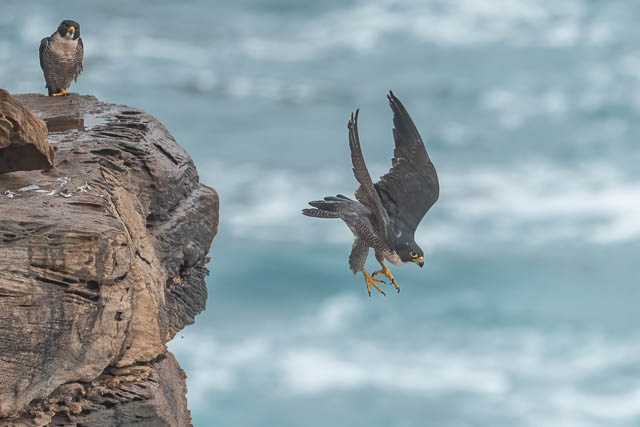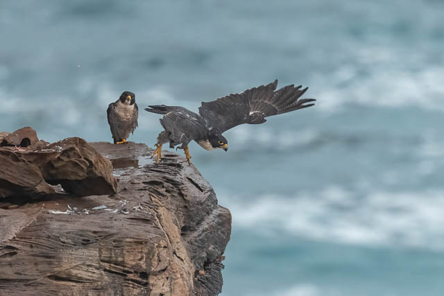 I later saw both birds perched on the cliffs at a distant spot. By this time, Valerie had left, but Alana had arrived.