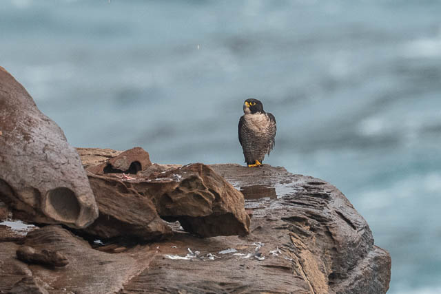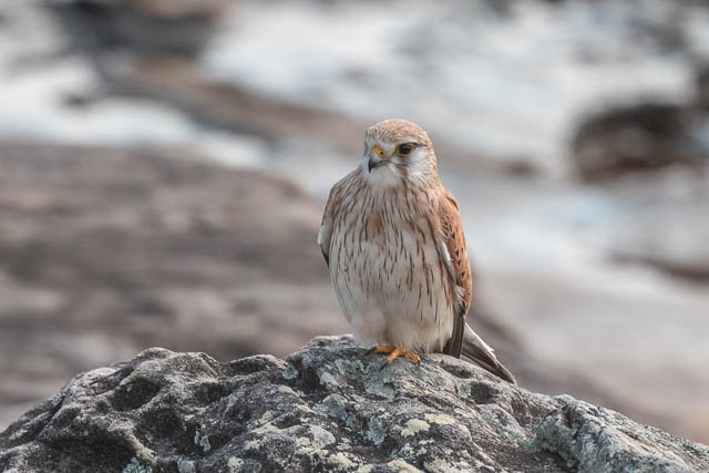 This time, near the park entrance at the south end of Maroubra Beach, we spotted a Nankeen Kestrel on the rocks near the sea.