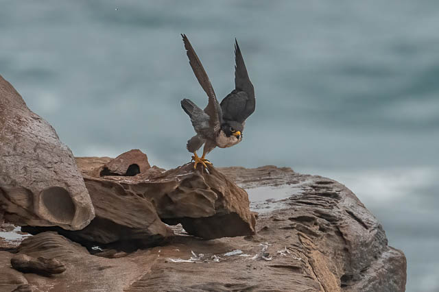 I spotted a Peregrine Falcon perched fairly high on the cliffs, and it was in a spot that I could get close to. I did not disturb the bird.
