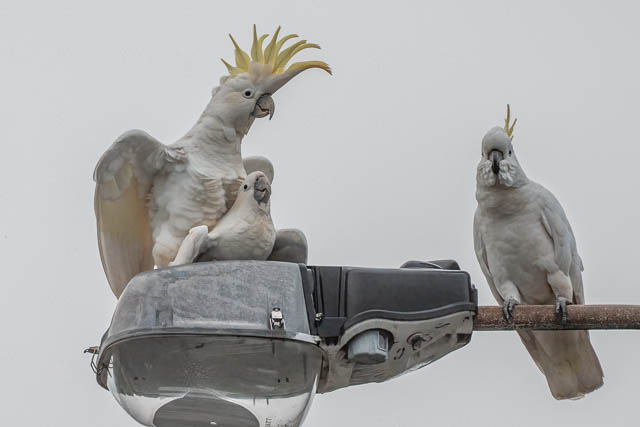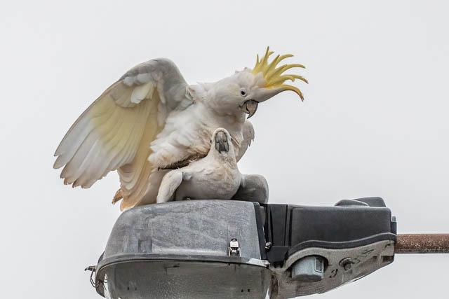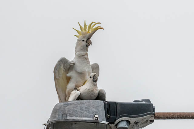 And back in the carpark – a pair of Sulphur-crested Cockatoos –