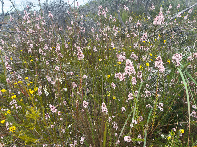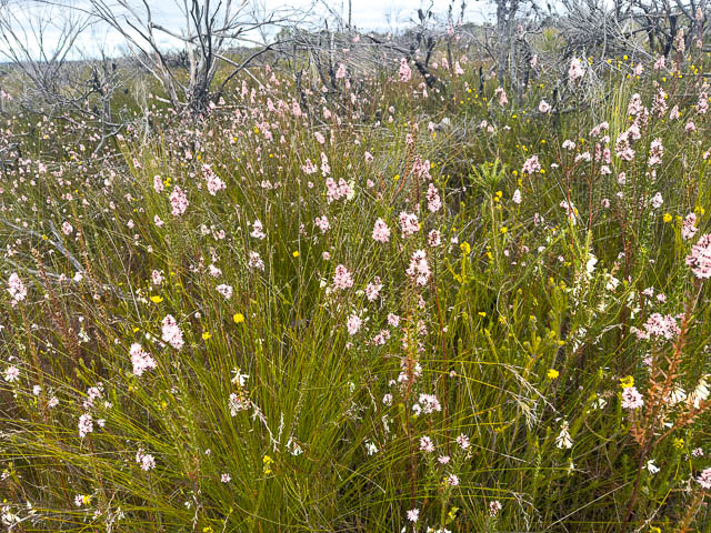 Brian had led a similar walk down the Mowlee Ridge last year. That one had been in June and we had seen some interesting geology, some Aboriginal sites and plenty of birds. This time the highlight was a magnificent display of coastal heath wildflowers.