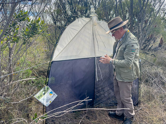 Then we bumped into Ross, who is working on a large insect project. He has a number of traps set up like this that collect insect specimens.