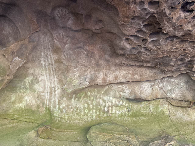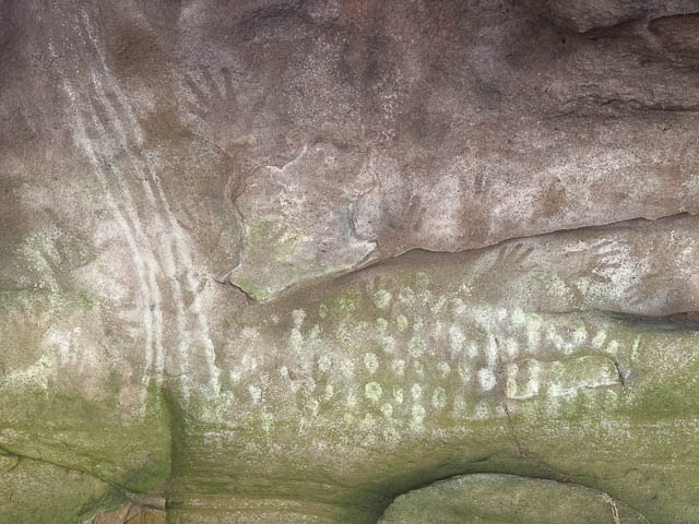 In early September, Bob and myself had visited some great Aboriginal art sites near the Putty Road. We were keen to see more, and on this second trip were joined by Doug. On this trip, we walked along a fire road that followed a creek. Along this valley are quite a few sites of interest.