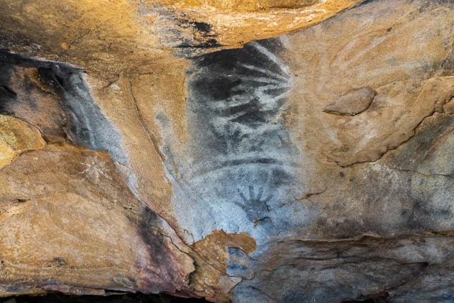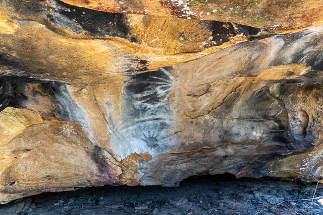 It had some “sunburst” type motifs. One large and one small, in white ochre. There was also a boomerang and shite hand stencils.