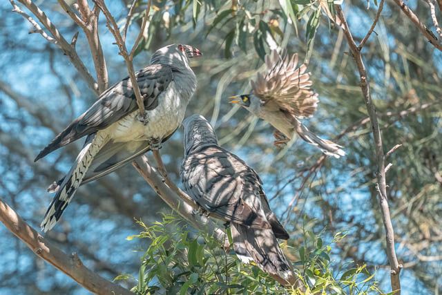 This Channel-billed Cuckoo is being pursued by a Currawong –
