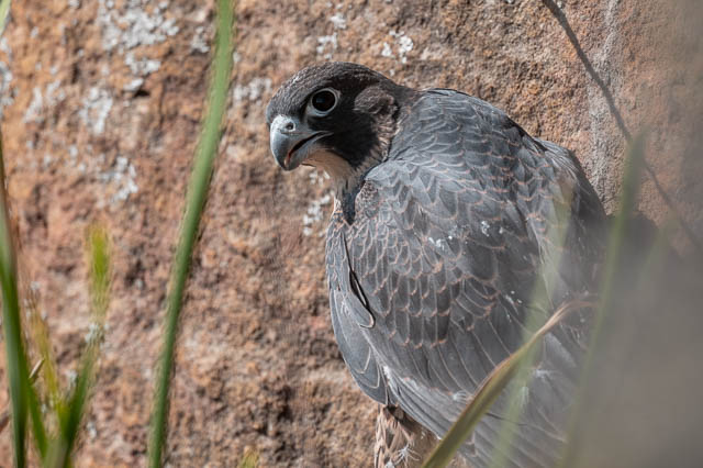 The first bird I spotted on the cliffs was a juvenile Peregrine Falcon. It seemed rather advanced, but I don’t know whether it could fly. It was on a ledge, not too far from a nesting site, so perhaps it managed to get there by hoping along ledges?