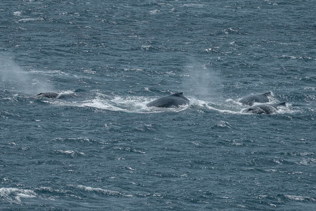 Perhaps the most incredible thing we saw were two large pods of Humpback Whales cruising past, just below the cliffs. One pod seemed to be large adults racing each other near or on the surface. Incredible to witness so close. But we also saw a lot of Dolphins. I think at one time about 50 went past us. And although the Peregrine Falcons were not active most of the time, we did witness one attacking some Ravens.