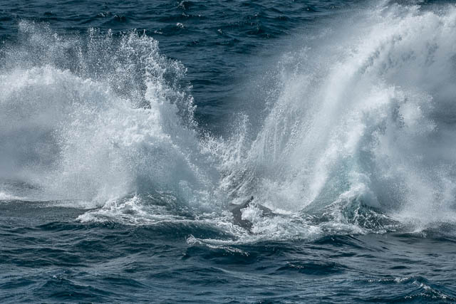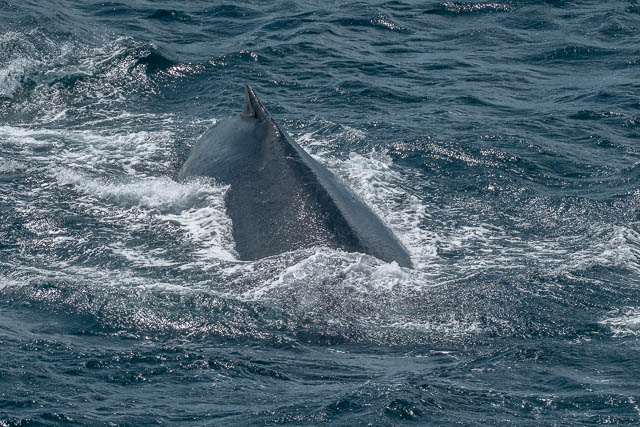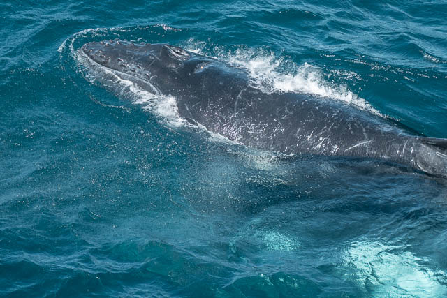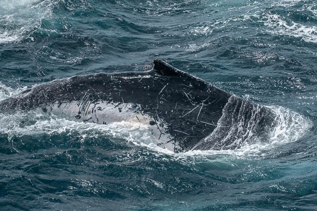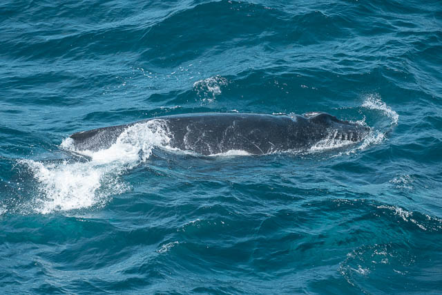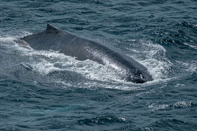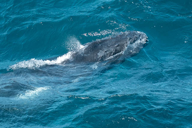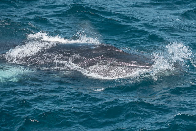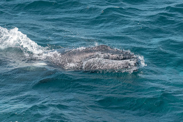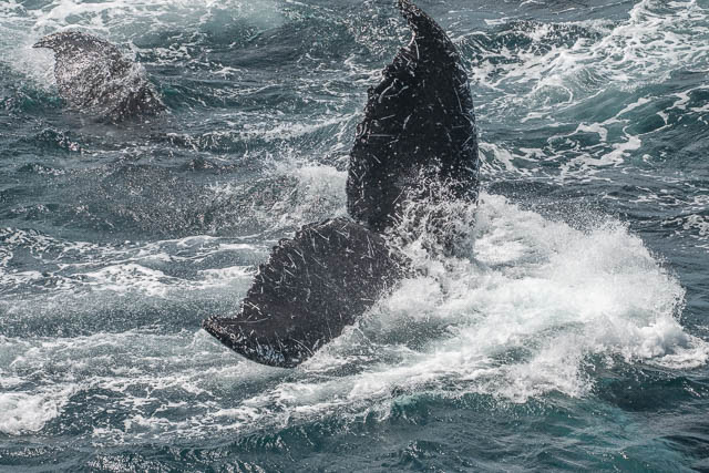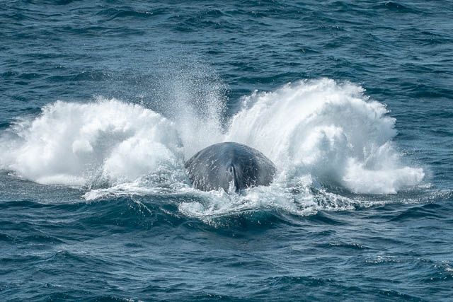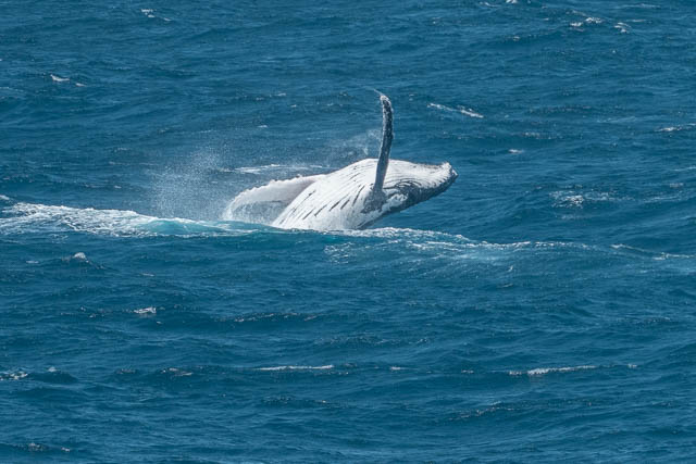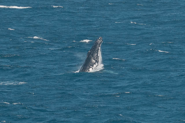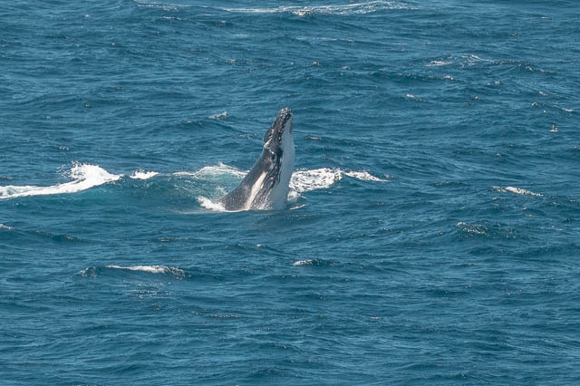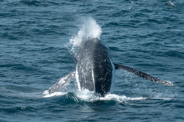 Then, we were startled by hearing a lot noise of a breaching whale hitting the water. I missed photographing that, but got the next breach.