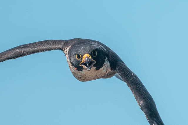 When I reached the right spot on the cliffs, I saw and adult Peregrine Falcon fly in –