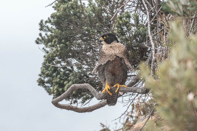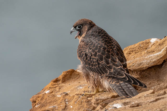 When we arrived we spotted a juvenile Peregrine Falcon perched on the cliffs –