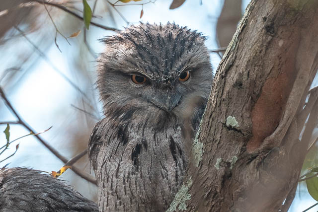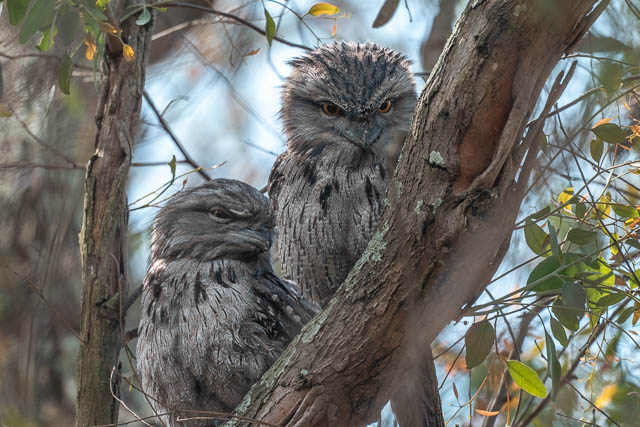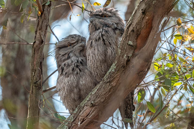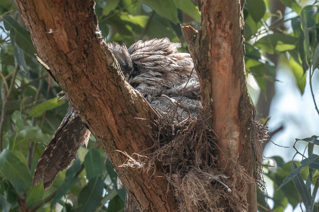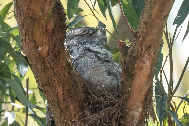 On our way, we spotted four sets of Tawny Frogmouths. The first was at the Leslie Muir Reserve.