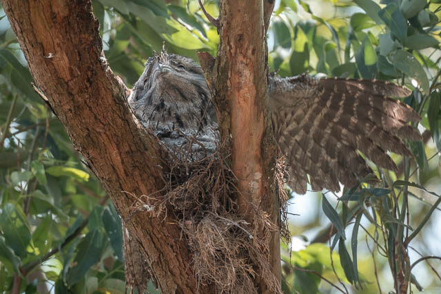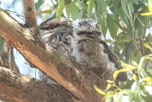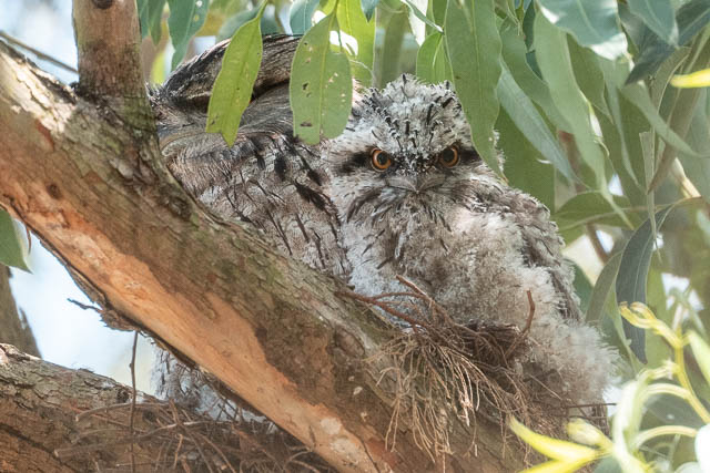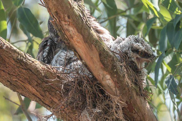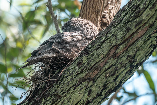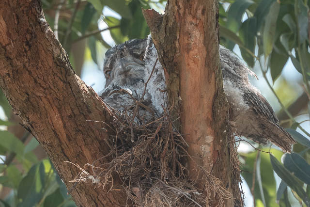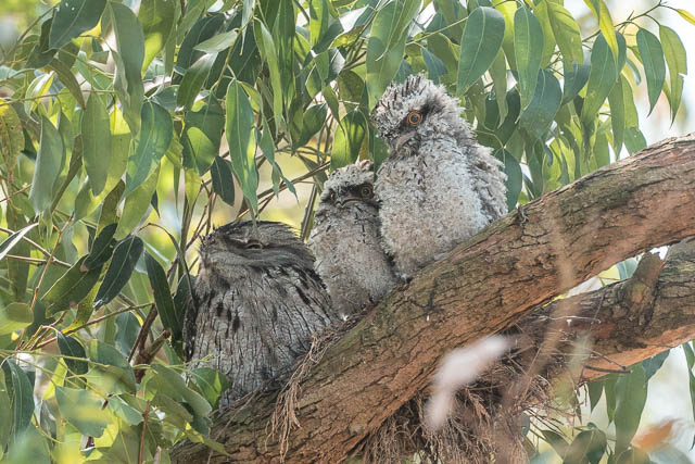Then, just past Ewen Park, at the Cricket Nest was another family of Tawny Frogmouths that I had seen before. We soon spotted an adult with two chicks –