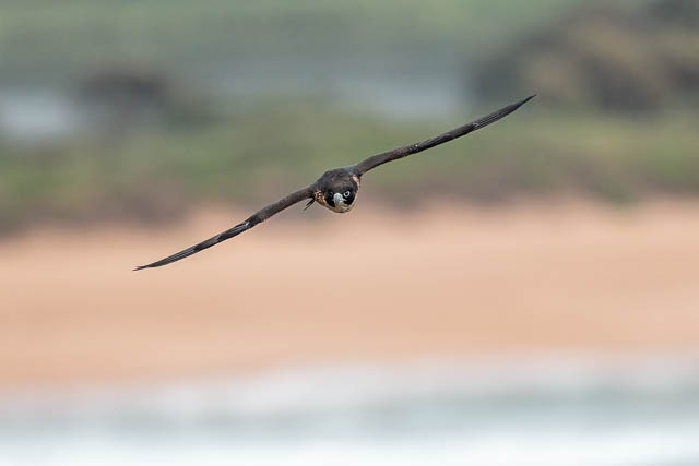 It flies towards the beach and then circles around and comes back with one of its siblings.