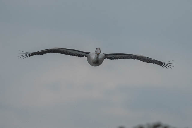 A Pelican flies past –