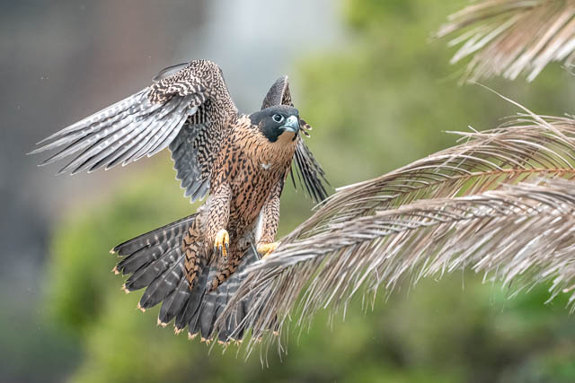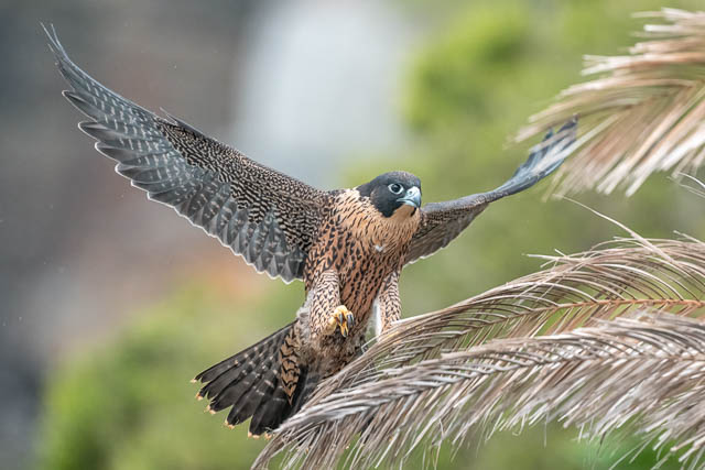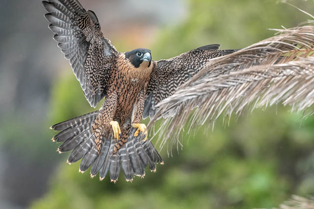 It tries to land in a palm tree (not a good place to land!)