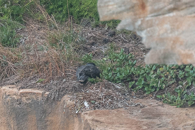 Valerie travelled up to the Northern Beaches with me, eager to see some Peregrine Falcon action that I had been talking to her about. But it turned out to be a very quiet day as far as the Peregrines went – we only spotted a juvenile sleeping on aa ledge as we walked out.
