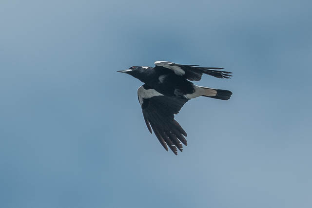 We set up to wait at the usual place we see Peregrine Falcons. After a while we spotted this Magpie flying out at speed –