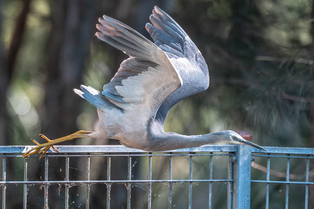 The Silver Gull flew very close to this White-faced Heron and disturbed its hunting somewhat.