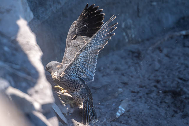 The parent did some nice fast flying along the cliffs. It looked like it was encouraging its chicks to start flying.