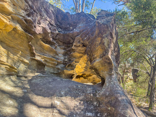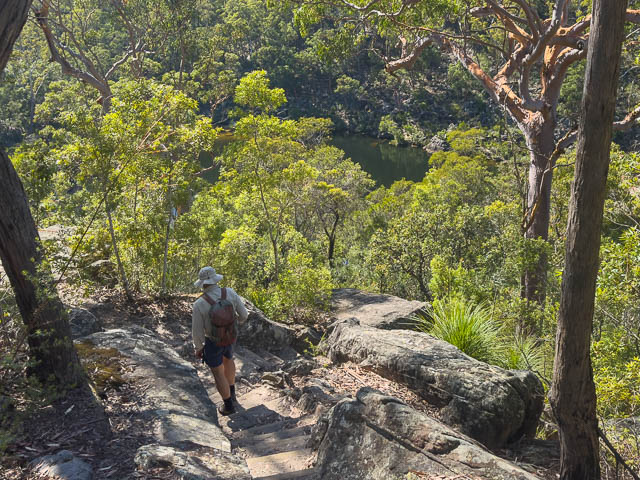 Doug provided car, and he drove us to the carpark at the end of the Georges River Road. The carpark provides access to the Keith Longhurst Reserve which includes the Basin. The walk to the Basin is one of  number of walks in the Reserve. The Basin is only about 1 km from the carpark. It’s an easy walk, but the last part is steep.