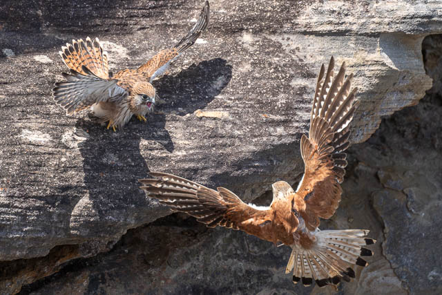 Then an adult Nankeen Kestrel appeared and perched nearby.