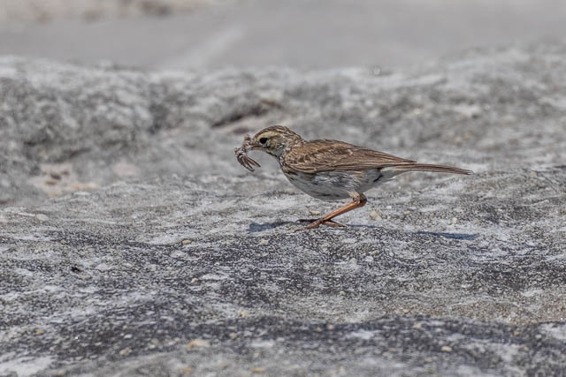Waling back towards the Peregrines, I spotted this Australasian Pipit. It seemed to have a crab claw.
