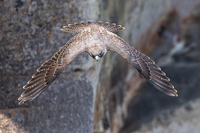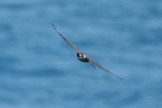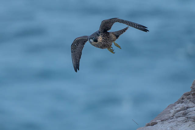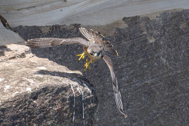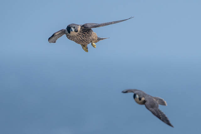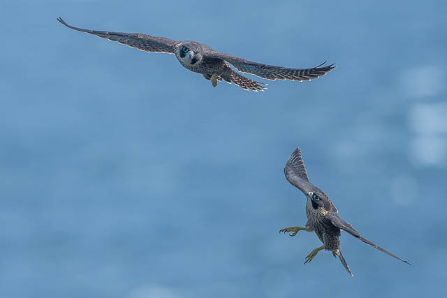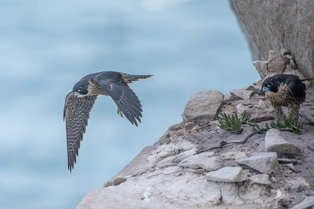 Then we heard and saw another juvenile Peregrine Falcon flying a fair way along the cliffs. It was calling quite loud and attracted its siblings. One of them took off.