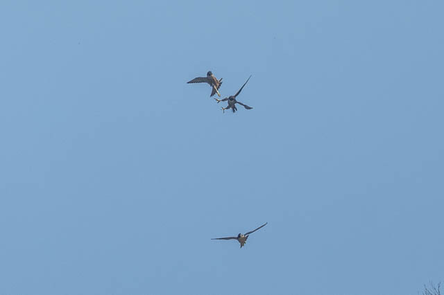 The other chick took off too, and soon all three were interacting together in the air. Some great flying, but too far away.