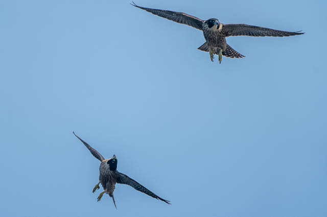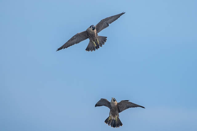 We spotted two of the three Peregrine Falcon chicks again – at the same location we had seen them earlier.