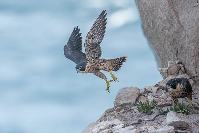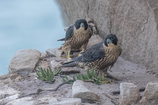 No Osprey perched on the cliffs this time, but we did spot two of the Peregrine Falcon chicks – obviously fledglings.