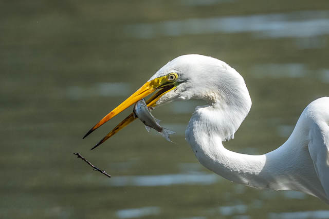 But, then my attention turned to the Great Egret. It had caught fish.