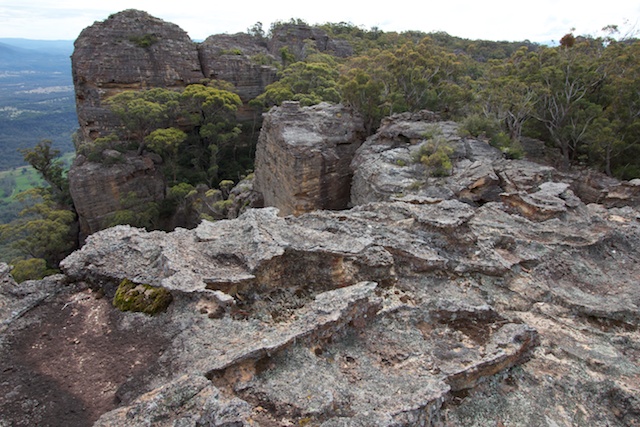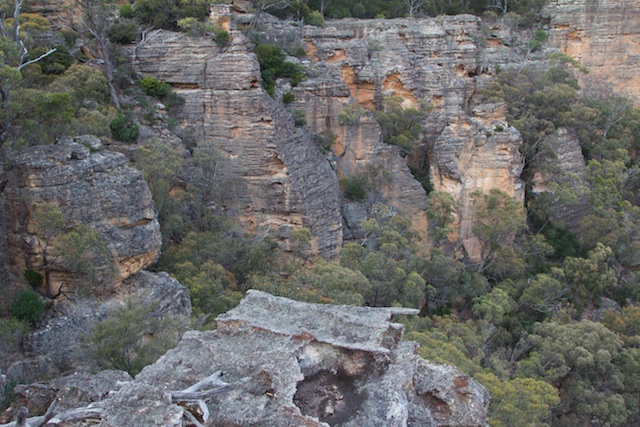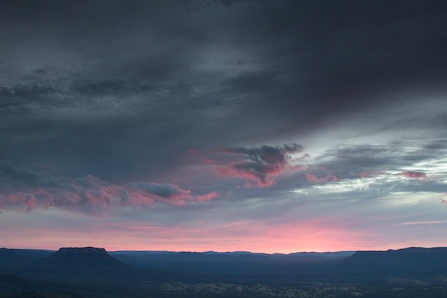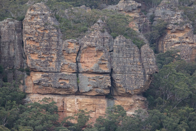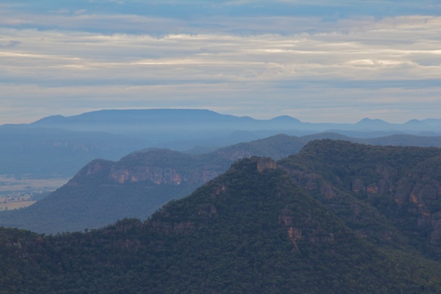 We camped near Point Nicholson. I was hoping for a good sunset and sunrise – but unfortunately both were disappointing. But we did have nice weather and great views looking out into the Capertee Valley. The stone fastness of Pantoneys Crown, a mesa, was impressive.