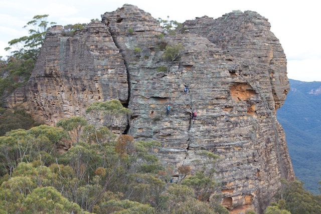 On the Sunday morning, Dave had to leave us to get back to some work. He left us and headed down the fast route for Little Capertee Creek while we continued on along the Red Rocks Traverse heading in the Mt Dawson direction. So it was back up the “Pagoda of Death” then along the tops, past many interesting pagodas, cliffs, pinnacles and deep slots.